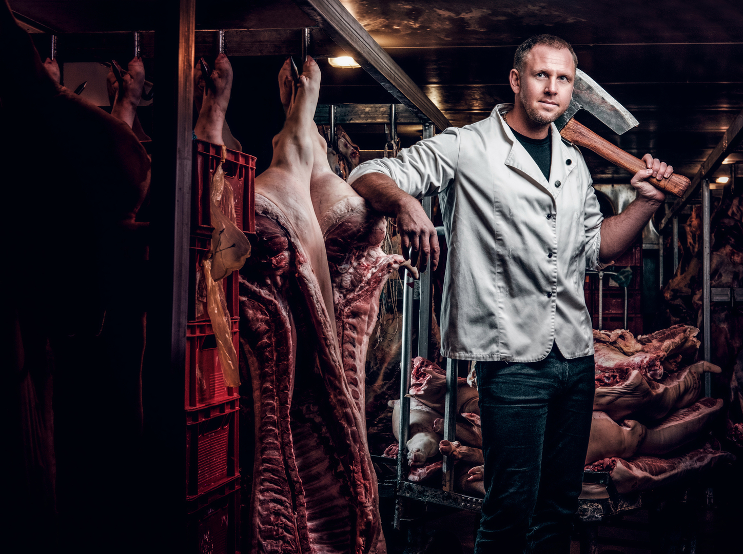 В Петербурге крюк проткнул грудь мяснику во время разделывания туши